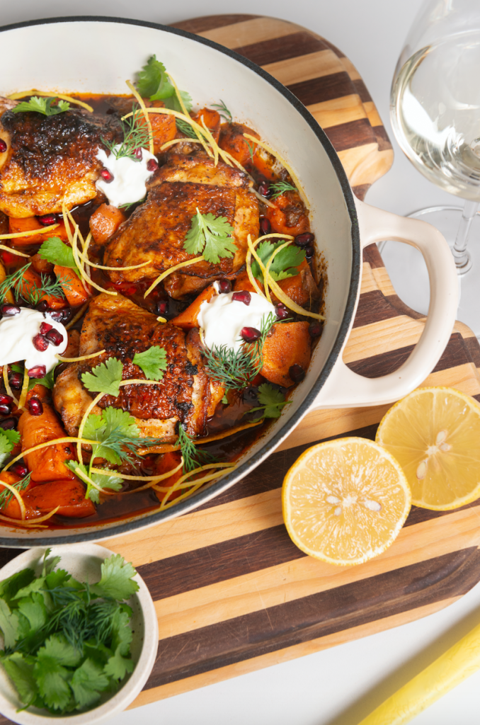 ONE PAN HARISSA CHICKEN WITH CARROTS & DATES