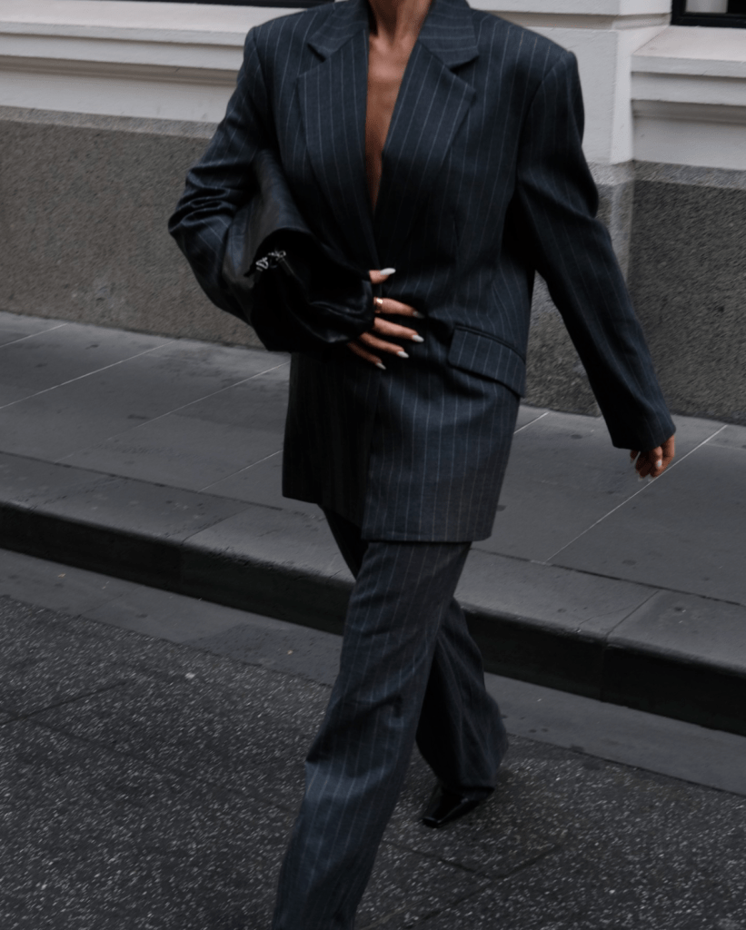 Start with the hunt: a vintage blazer with sharp shoulders, or a pair of low-rise slacks found buried in a thrift store rack. Tailoring with personality deserves accessories to match. Mist Jewellery’s Cross Over Cuff strikes the balance. Bold yet minimal, with a fluid shape that wraps the wrist like it was meant to be there. The flexible sterling silver band is easy to slip on, but hard to forget.