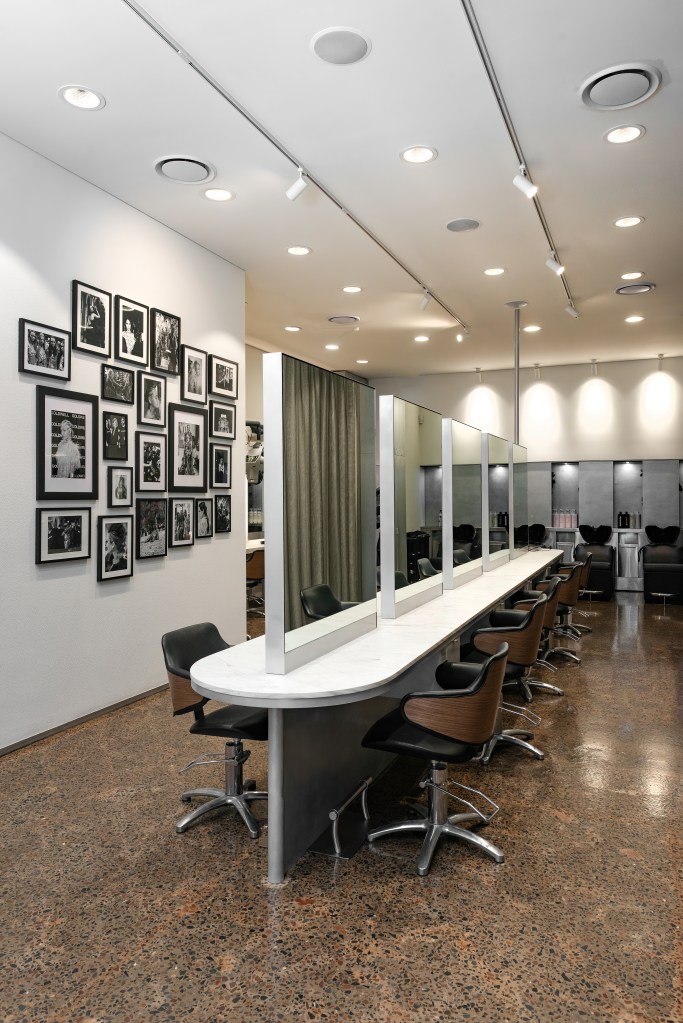 Beyond the workspace’s sophistication, clients will immediately notice the picture wall showcasing our work over the years. It features moments from backstage at fashion weeks, editorial shoots, and industry highlights; a visual story of where we’ve been and the calibre of work we deliver. It’s not about nostalgia; it’s about craftsmanship, experience, and reminding both our clients and our team that this salon is built on real work, real creativity, and decades of dedication to the industry.